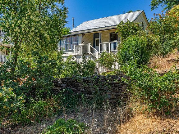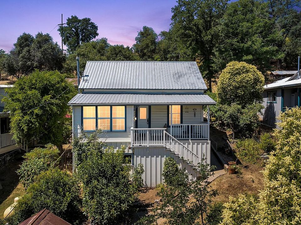 This historic Mother Lode Victorian is ready and waiting for new owners! Listed on the 1900 Census this home is full of Mother Lode History and charm. Inside the home shines with original 1x3 bead board ceilings and beautiful 1x3 Red Fir wood floors and restored to their original beauty, 1x12 rough sawn pine/fir interior walls. An updated kitchen with a new dishwasher, and tile countertops. There are two nicely sized bedrooms and a lovely east facing Sun Room. Both the primary suite bathroom and the 2nd full bath have been updated. Spacious laundry room with cabinets. Vintage covered porch offers incredible views of downtown Angels Camp and the surrounding hills. Wiring and plumbing and interior trim and finishes are all upgraded and designed to blend contemporary fixtures and treatments with the charm and character of a true historical home. Original rock walls adorn the large backyard. Vintage Trumpet vines, fig trees, roses and star jasmine dot the landscaping.