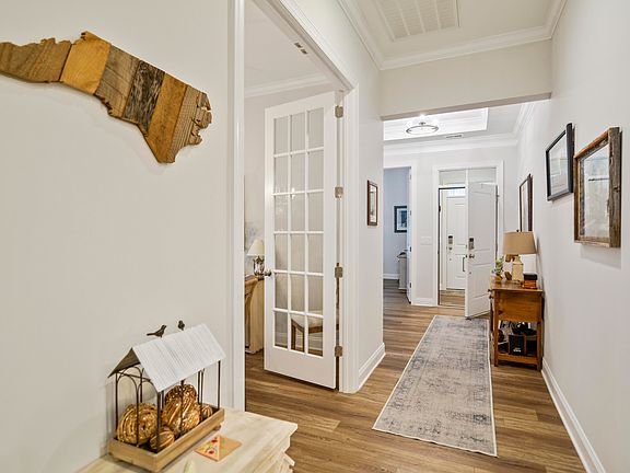 Active adult 55+ community in prime Apex location. Immaculate and move in ready Toll Brothers ranch style home. 10 ft ceilings. Open floor plan. LVP flooring throughout home. Crown molding. Spacious family room. Upgraded kitchen offers custom soft close cabinets, designer tile backsplash, center island, quartz countertops & stainless steel appliances. Office/flex space with French doors. Large primary suite includes dual vanities, oversized tile shower with bench & walk in closet. 2 car garage with overhead storage. Amazing screen porch features epoxy floors, retractable screen panels & gas log fireplace with stone surround. Fenced backyard. This quiet, small community is designed for active adults and offers a variety of social groups and events throughout the year. With quick access to the Triangle Expressway (540), you're also conveniently located less than 3 miles from the new Harris Teeter, 4 miles from Publix, and 1.5 miles from the scenic American Tobacco Trail. Low HOA dues includes access to amenities (2 pickleball courts, 1 bocce ball court, a gazebo and fire pit) with front and rear yard mowing and landscaping maintenance.