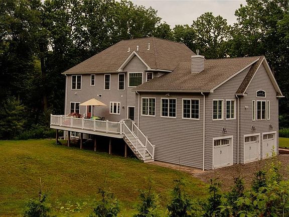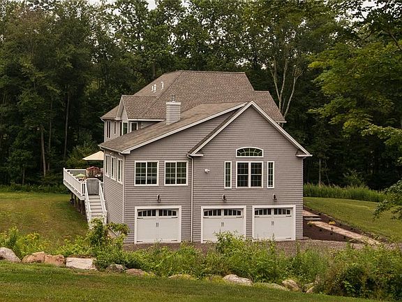 Nestled on a private road this Custom colonial built in 2012 epitomizes elegance, style and functionality. Construction is 2x6, steel beams in basement and garage, no poles necessary. Central air, central vac, alarm system. Heated with propane, 1kgal tank buried in the front lawn. Recent landscaping with stone retaining walls and walkway. Oversized deck. 2.14 acres, level, wooded and private. Elaborate trim throughout the house depicts a high level of craftsmanship. Hardwood floors throughout. 24x12 sunroom in addition to fam rm. kitchen is a chef's delight, all custom white cab, built-ins, ss app, pot filler, double oven, marble counters, and granite on the island. Mas br has triple tray lighted ceiling, bath has marble floor and shower. Paved driveway. Finished basement 800 sq ft in 2021.