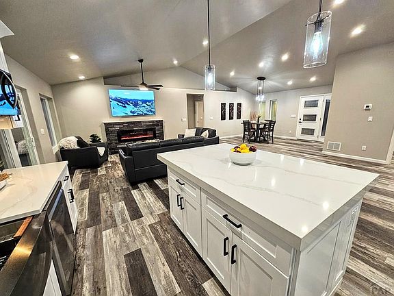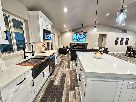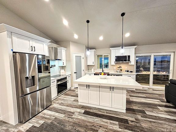 Your dream home is BUILT and ready for you to move in today! (Minutes from Colorado Springs) This very beautiful single-story 3 bed 2 bath home, a timeless masterpiece with soaring 8' vaulted ceilings. Truly unique modern sophistication & contemporary living on 1.01 acre with 3 car attached garage. Also included is a 75inch T. V. Kitchen includes recessed lighting, granite or quartz counter tops, island with ambient lighting, tile flooring and pantry. Master bath includes two separate sinks and walk-in closet. Covered back porch will allow you to enjoy your outdoor time in comfort next to your built-in gas fireplace and just minutes from beautiful lake Pueblo. Can't beat being the first person to live in the home!