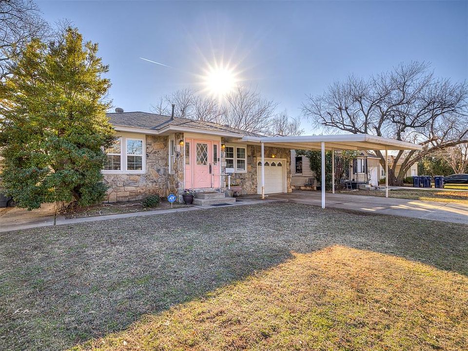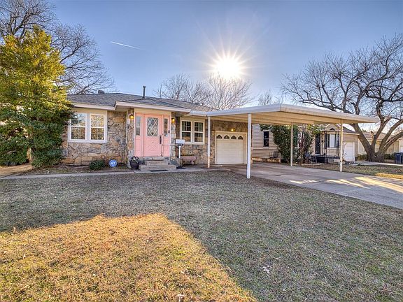 Multiple Offers Received- Best and Finals to be submitted by 8pm 12/22. Welcome to this cozy 3-bedroom, 2-bathroom home located in the highly sought-after Nichols Hills Elementary School district. As you step inside, you’re greeted by original wood floors that lend warmth and character to the home. The front of the house features two comfortable bedrooms and a full bathroom, along with a quaint living room—perfect for relaxing or entertaining guests. Continuing through, you’ll find an open-concept kitchen with a charming breakfast nook. The kitchen flows seamlessly into a spacious den with a striking floor-to-ceiling rock fireplace, creating an inviting space ideal for gatherings. Off the den, you’ll find the third bedroom and a second bathroom, offering a great amount of flexibility for use as a guest suite or home office. The den opens out to a large deck, perfect for outdoor dining or relaxing while enjoying the generous backyard space. The backyard is a blank canvas, ready for you to transform it into your personal oasis. There is also a convenient outbuilding being sold as-is. The home features a laundry area just off the kitchen in a storage space behind the garage. This space offers great potential for conversion into a dedicated laundry room, adding equity and additional square footage. Also, you'll appreciate the convenience of a two car carport. Other updates include a new HVAC system installed in 2023. With its blend of classic charm, modern potential, and prime location, this home is a wonderful opportunity for buyers looking to live in one of Oklahoma City’s most desirable neighborhoods. This home has been well maintained and is ready for someone to put their own touch on!