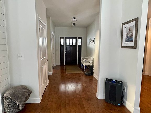 Inviting 4-bedroom home with an open floor plan and lots of natural light. Great home for entertaining with a large kitchen island featuring Quartz countertops. Custom first floor office, maple hardwood floors, mini splits for your added comfort, custom built ins for storage, Primary bedroom with walk-in tiled shower, soaking tub, and walk in closet. Finished lower level with wine bar, theater/family room, and 3/4 bath. 3 car garage with walk up storage area. Country with 3.57 acres yet minutes to I89 and all conveniences. Complete with owned solar panels! (Owner is a licensed agent) Sunday March 24th Open House 1-3. Owners are ready to show now.