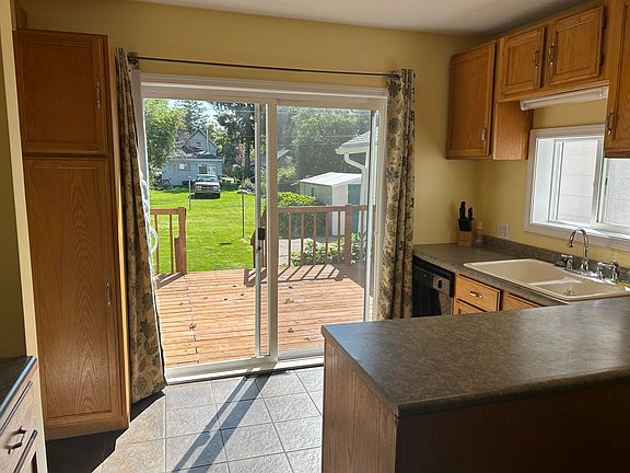 Charming 5 bedroom home on quiet tree lined street in Lake Odessa. This spacious home has many updates including central air, replacement windows, roof in 2022 and all appliances are included! Covered front porch is perfect for summer evenings and holiday decorating. Slider onto the back deck for BBQ and entertaining. Attached one car garage and breezeway make for a perfect entry and place for benches and coat rack. Kitchen has loads of natural light with plenty of storage and overlooks the back yard. There's even a place to shoot hoops. Nice storage shed for mower and garden tools. Immediate occupancy.