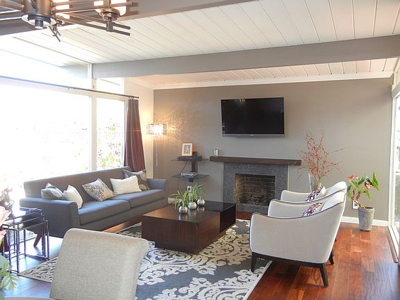 OPEN HOUSE 11/7 AND 11/8 FROM 1PM-3PM. Amazing Eichler style remodeled home with attention to detail and a modern flare. Beautiful newer hardwood floors that is sure to please anyone. Complete remodel of the kitchen few years new with stone floor, granite counters, SS appliances and a breakfast bar. Floor to ceiling height windows in the family room brings in an abundance of sun to give the home a bright and airy feel to it. Remodeled bathroom in 2012 with remarkable stone/tile finishes in the over sized stall shower. Serene backyard setting with patio and decking seating and room for your imagination. This home is walking distance to a neighborhood park and to dining and other local amenities in the area.
