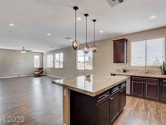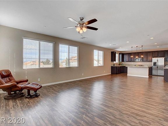 BEAUTIFUL HIGHLY UPGRADED home in FANTASTIC Henderson 89074 location! Enjoy Mountain & Sunset Views from this Gorgeous & Private Zen Like Backyard w/ Waterfall Koi Pond, Fruit trees, & Paver Stone patio. Unique floor plan features 2 Great Rooms (1 up & 1 down) w/ bedrooms on both levels. GOURMET Kitchen features: Rich Granite Counters, Dark Wood Cabinetry, Stainless Steel Appliances, & Accent Pendant Lighting! *Incredible value at only $160 psf!*