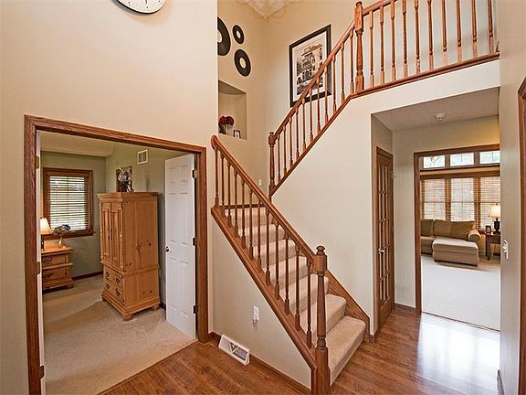 This stunning custom built home sits on an one acre lot with a private wooded backyard. The two story entry is beautiful. FIRST FLOOR MASTER BEDROOM and master bath are accented by a skylight and vaulted ceiling. Bath has a jet tub and separate shower area. The two story windows in the living room accent the two sided gas fireplace that also faces the kitchen. Over sized kitchen area has expansive counter tops, expanded area for table. Perfect spot for entertaining with the sliding glass doors leading to the outdoor patio area. Fourth bedroom is being used as an office(extra storage area in this room from to attic area). Impressive finished lower level area is over 1500 sq ft. The backyard is just fantastic with a large patio for entertaining-a bar area with an overhang for a TV, refrigerator area and a kitchen area. Garage has an extra 1/2 car bay for storage. Custom wood blinds accent many rooms. First time this home is being offered. Welcome to 1318 Route 288.