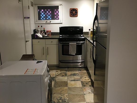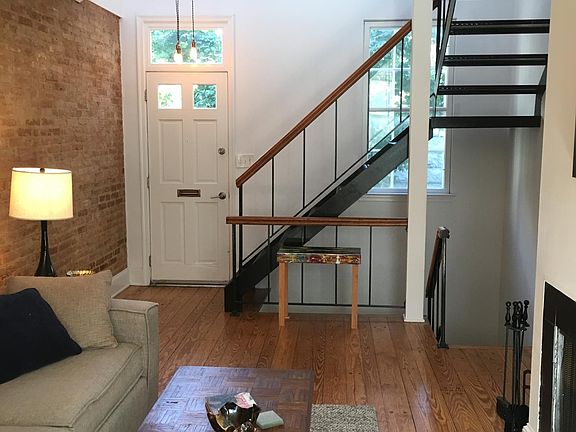 FACETIME TOURS AVAILABLE! 3-story, 1BR/1.5BA classic Baltimore alley house, w/wood-burning fireplace, private deck and small garden for rent on charming Rutter Street, a street of small, beautifully maintained, 19th-century row houses in central Bolton Hill! This modern, bright, cozy and cheerful house sits just behind the stunning Corpus Christi Church across Mount Royal Avenue from MICA. It's just two blocks from the Mount Royal Light Rail Station, and a few blocks from I-83. It's easy walking distance to Penn Station, the State Center Metro stop and the stores, restaurants and bars of Mount Vernon and Station North, but without the noise, traffic and quality-of-life issues. Rutter Street is a narrow alley-street located between Lafayette St. and Lanvale St. and half a block from Mount Royal Avenue. The house is open, contemporary and bright, with a floating black steel staircase between floors. Top floor: master bedroom and bathroom Main level: living room with built-in bookcase, wood burning fireplace, coat closet and access to rear deck and yard. English basement lower level: dining room, kitchen, and half bath Washer/Dryer combo in kitchen Kitchen has modern appliances, gas stove, garbage disposal and deep sink. Central AC/heat with Nest thermostat system Exposed brick interior wall Hardwood or ceramic tile floors throughout, with NO wall-to-wall carpeting! Back porch with small lovely fenced garden w/rain barrel and enough space to plant a few veggies, herbs and flowers. Available March 1st, 2021. Tenant pays gas & electric and water. First month's rent and security deposit required w/ minimum 1-year lease. Credit check and references required. This house is managed by a caring, hands-on property manager who lives nearby. Tenant pays gas & electric, water.