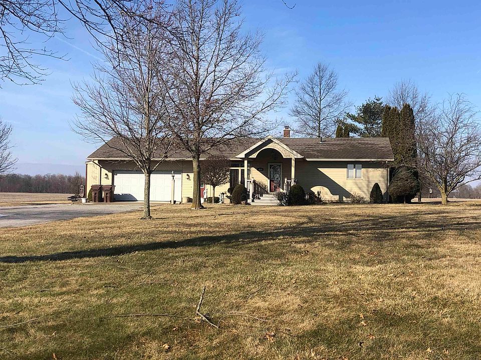 Country living in Noble County! Well maintained ranch style home on finished basement with attached oversized 2 car garage. The buyer will appreciate all the storage space in the 40x20 outbuilding with Concrete floor. Large enough to store trailers, boats and all the equipment the rural lifestyle requires. Enjoy the peace and quiet from the covered front porch with composite decking. Updates include new Roof Shingles on the house and Outbuilding with a complete tear off, 5 years ago. Living room features beautiful hardwood floors. Ceramic floors in Kitchen and bathrooms. Eat in Kitchen features Custom cabinets, with appliance garage. All kitchen appliances to remain with the property. *(Not Warranted)* Vaulted Ceiling Family Room with French doors to Patio. Finished basement offers a great recreation space for gaming or theatre room. Full bathroom and storage area. House and Barn are being sold out of a larger parcel. Survey has been ordered, and will show the 2.25 acre plot that is included in this sale. Great location with easy access to Highway 3.