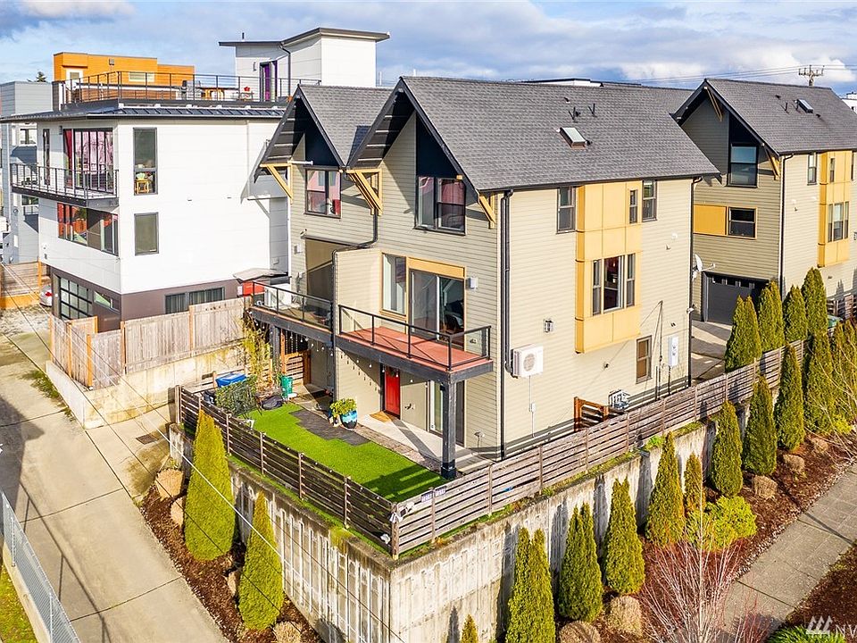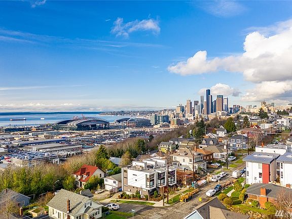 Stunning views of the Puget Sound, city lights & Mount Rainier await in this sophisticated townhome. The main floor features an open floor plan w/ large windows, new bamboo floors & a cozy gas fireplace. The light & bright kitchen boasts quality finishes w/ stainless steel appliances, a 5-burner gas range & quartz countertops. Watch the sunset from your family room or outside on the Trex deck, perfect for entertaining. Upstairs you will find 2 ensuite bedrooms, the main bedroom offering spectacular views. Upstairs laundry offers convenience. The lower level includes a finished 3rd bedroom perfect for guests, working from home or a gym/bonus space. Attached garage & ample street parking. Close to I-90/I-5, shopping+restaurants. Welcome Home!