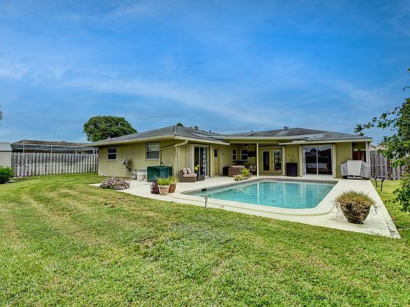 Showings begin at the Open House on Saturday, October 9th from 11 to 2 for this true 4-bedroom pool home with a 2-car garage in the popular community of Boca Raton Square. No HOA, zoned for A rated Addison Mizner (.9 miles), Boca Raton Middle (1.9 miles) and Boca Raton High Schools (2.4 miles) and just 10 minutes to the beach! The home has complete hurricane protection, is wired for a generator and has no overhead power lines! The spacious kitchen is open to the living/dining area and has plenty of storage including a pantry with pullout drawers, double wall ovens, wood cabinets, pot filler faucet, granite counters and an island with sink. The living areas have neutral porcelain tile floors and all bedrooms have wood-look vinyl plank floors. Plantation shutters decorate the windows in the living room and primary bedroom and French doors lead from the dining area to the patio. The primary bedroom offers a large walk-in closet with custom built-ins, separate vanity area and sliders opening to the patio. On the opposite side of the home are 3 guest rooms, two have walk-in closets and one has sliders to the patio. The guest bath has a shower/tub combo and serves as the cabana bath. A bonus not often found in east Boca- an interior air-conditioned laundry room where there is also a tankless water heater. The private backyard with southern exposure has a covered patio area for escaping from the sun, is fully fenced and has a storage shed for your tools and toys. A/C was replaced in 2019, flat roof was replaced in 2018 and main roof in 2000. Come tour at the Open House!