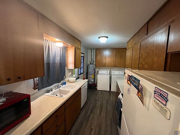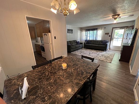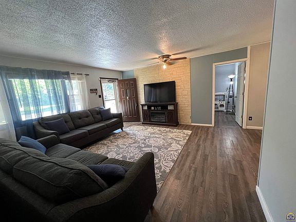This is an Awesome 4BR find! Well maintained, comfortable, move in condition SW Topeka Ranch home features a 4th BR with walk in closet, covered front porch, mature shade, landscaping, fresh interior paint, luxury vinyl flooring, carpet, architectural roof, sewer, two driveways, 6’ privacy fence, low maintenance vinyl siding, oversized detached 2 car garage with lots of off-street parking. 42' x 11' concrete driveway. Relax, BBQ & entertain on the covered patio & enjoy the kids & pets playing in the fenced yard. Not a drive by. You must see the inside. Close to shopping, schools, restaurant & recreational facilities. Call today for a private showing! Sold AS IS. Inspections are for informational purposed only.