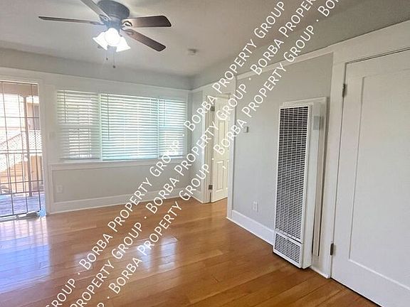Welcome to this extra-large upstairs 1-bedroom, 1-bathroom apartment designed for comfort and style. This bright unit features a gas stove, quartz countertops, vinyl click flooring, and a gas wall heater to keep you cozy year-round. Enjoy the convenience of a spacious closet, ceiling fans, blinds and window screens, and a reglazed tub with a fresh full two-tone paint throughout. Additional perks include 1 assigned parking space and modern finishes that combine both functionality and charm. Don't miss the opportunity to make this beautifully upgraded unit your new home!