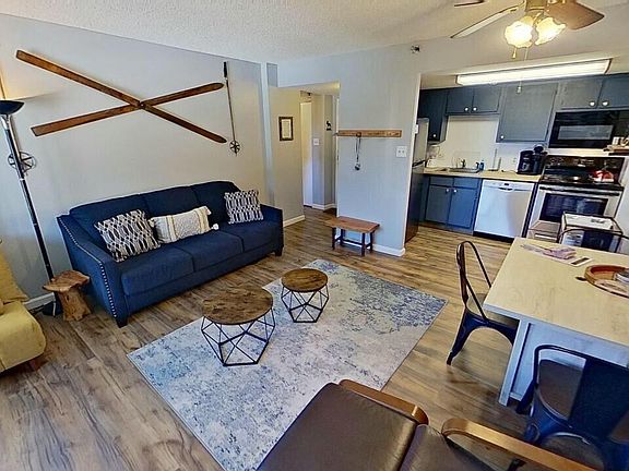 Renovated, efficient, and charming is how I would describe Silvercreek 1318. This one bedroom home is located on the third floor of the 1st wing of Silvercreek. It has beautiful vinyl floors, a renovated kitchen with stainless steel appliances, a modern design and the convenience that everyone desires. Silvercreek 1318 is a charming one bedroom home that has an electric fireplace and a balcony that looks out over the courtyard and the tubing hill. This home features an in home washer and dryer in the hallway leading to the bedroom. Silvercreek is one of the best one-stop-shop locations. It offers an indoor/outdoor heated swimming pool, sauna, exercise room, restaurant, shops and rental gear. This home is awaiting you and your family.