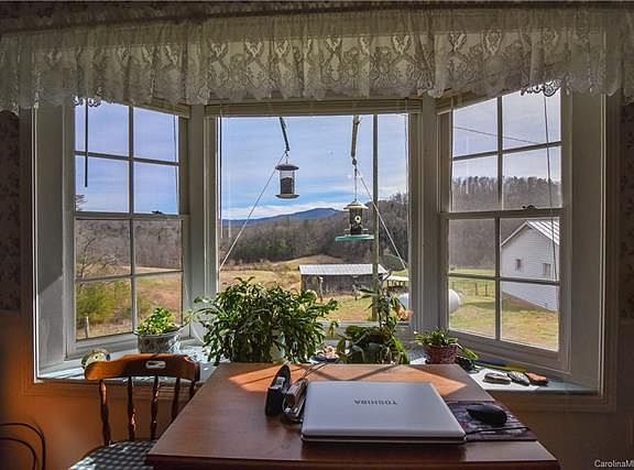Only 2 owners for this picturesque property w meticulously maintained farmhouse, barn, 2 car garage & workshop on 34.32 acres w fruit trees. Peaceful & private w 22+ acres in pasture, perfect for horses, livestock or sustainable off grid capable organic farm. Would make great estate, family compound or development. There are 2 springs, creek w concrete bridge, acres of fencing & trails leading up to a forested ridge. Covered rocking chair front porch leads to living room w gleaming hardwood floors & tile gas FP. There is a large eat in kitchen w lots of cabinet space . Spacious Master BR has brick wood burning FP, bay window w amazing mountain views & large walk-in closet. Access the rear covered rocking chair porch from Mas BR. 2 additional BRs also have mountain views. There is a large attached canning room w lots of storage for months supplies of provisions. 3 minutes to I40, 5 minutes to Old Fort, 15 to Black Mountain or Marion and 30 minutes to Asheville.