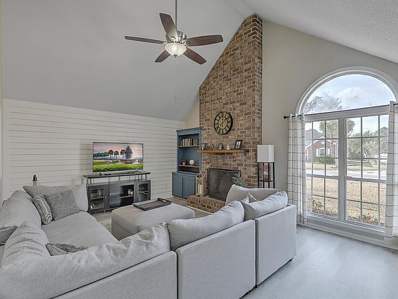 This gorgeous 3 bedroom 2 bathroom ranch style home truly checks all the boxes. While wonderfully updated inside the home, the HVAC and water heater have also been replaced recently - truly making this home turn-key! Upon entering, you will notice LVP flooring that extends throughout the main living spaces of the home, tall vaulted ceilings, and a beautiful brick fireplace with custom built-ins. The kitchen features butcher block countertops, subway tile backsplash, and stainless steel appliances. Conveniently located off of the kitchen are sliding glass doors, which allow an abundance of natural light into the house. These doors also lead you onto your private screened-in porch, making for a great place to have breakfast and sip your coffee as you start your day! The oversized master suite also features vaulted ceilings, tile floors, double vanities, a shower/tub combo, and a walk-in shower. Down the hall, you'll find two generously sized bedrooms, a full bathroom, and a designated laundry room. Shiplap accent walls tie together the coastal feel of this home and add a great pop! Lastly, there is a retired golf course behind the home that makes a great space for pets and children to play! The best part about this space is that it is cut and maintained by the HOA! While zoned for desirable Hanahan schools, this centrally located home is just a short drive to I26 making it convenient for your work commute, shopping, dining, beaches, and all of the fun things Charleston has to offer!