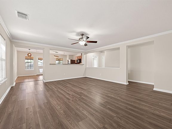 Welcome to this charming single-story home in the Villages of Town Center perfect for a first-time homebuyer! This well-maintained, move-in-ready property offers three bedrooms and two bathrooms, featuring fresh interior paint and brand-new carpeting throughout. The seamless floor plan begins with a warm, inviting family room ideal for gatherings and everyday living. At the heart of the home, the open kitchen blends style and functionality with a center island, breakfast area, and abundant cabinet space. Natural light pours in through bright windows, enhancing the home’s airy feel. The private primary suite boasts a large walk-in shower and an oversized walk-in closet with dual doors. Step outside to enjoy the wood deck and peaceful setting with no backyard neighbors. Nestled in a quiet, quaint community, this home is conveniently located near shopping, dining, and grocery stores offering comfort, charm, and convenience all in one.