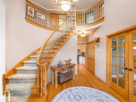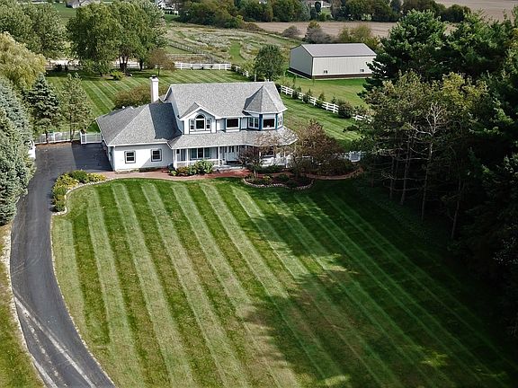 A Queen Ann Style home with today's open floorplan and wrap around porch set on 5.75 acres with horse paddock & run-in. Beautifully maintained, sit on the front porch to watch the sunset or enjoy the new deck overlooking the backyard and serene equestrian haven. Dramatic curved staircase, formal living and dining room, first floor den and laundry room, family room with fireplace open to updated kitchen has new appliances and granite countertops. Nice master suite with private bath and 3 more generously sized bedrooms. Full finished basement with rec room, full bath and exterior entrance. Surround sound with built in speakers on main floor and outside. Seller has added electric/water to run-in/new furnaces/water heater/carpet/some windows/all light fixtures/new garage door openers w/keypad and more.