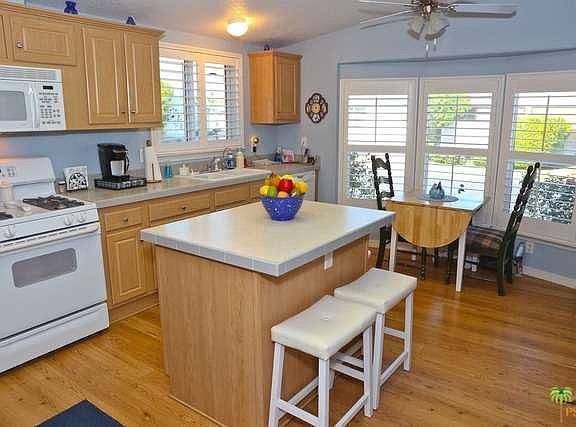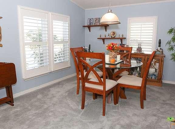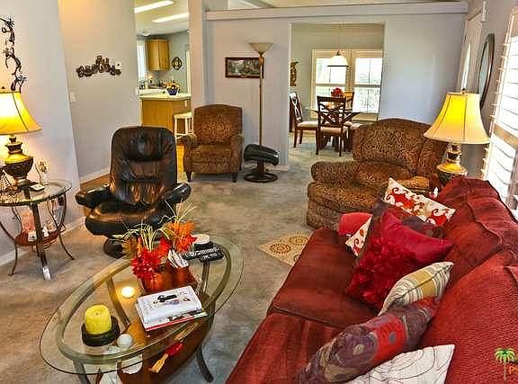 Another fantastic opportunity to own in the exclusive gated senior community of Desert Sands Mobile. This beautiful 2005 Model has the look and feel of a regular house and includes a two car garage, plantation shutters, premier insulation and sits on a corner lot with neighbors on one side only. If that isn't enough for you, the panoramic view of the western and southern mountains makes this gorgeous home a top of the line winner.
