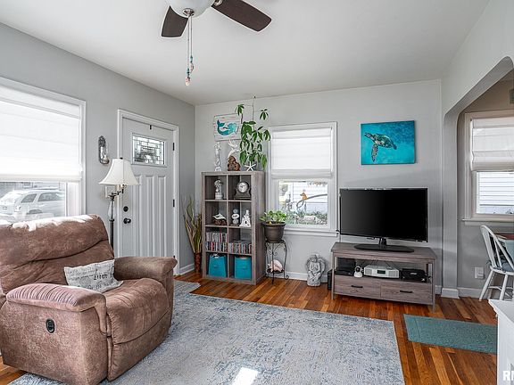 If you are looking for a ranch, this ONE is a must see. Impeccably kept (bigger than it looks) 2 bedroom is ready for you. Gorgeous hardwood floors throughout. Per seller: exterior paint, garage door and roof are all new 2023. Gutters 2021. Replacement windows and a full basement is future added space for entertaining or relaxing. Oversized one car detached garage. Covered attached parking slab can double as a quaint patio for entertaining, it also leads to the perfect manicured yard that is completely fenced. This home is adorable.