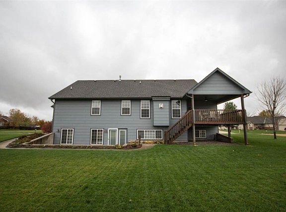 Lovely 5 bedroom, 3 bathroom home in Haysville, centered on 2 lots for a spectacular lake view! Beautiful landscaping surrounds the house. Walk into the spacious living room with tall, vaulted ceilings boasting a cozy gas fireplace framed by a beautiful granite mantle. From the living room is a door leading onto the covered deck overlooking the large backyard with gorgeous lake views all around. Beautiful oak cabinetry and trim can be found throughout. The kitchen has granite countertops including the island, pull out shelving, and a lazy susan. Three of the five bedrooms can be found on the main floor including the master suite with double vanity private bathroom and huge walk-in closet. In the basement, the huge family room is accompanied with a kitchenette/wet bar and a free standing Harmon pellet stove! The additional 2 bedrooms can be found in the basement as well, each with a walk-in closet. The storage room has a secondary set of laundry hook ups, the other set of hook ups can be found in the hallways on the main floor tucked behind closet doors. Call today to schedule your private showing!