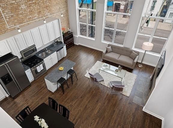 Huge, sun-filled 3 br/2.5 bth + office duplex-up loft in solid brick 8-unit elevator bldg in outstanding walk-to-everything Lakeview location! All bedrooms are completely enclosed! Great building for young family or retiree. Amazing school district location with children's park one block away. Features soaring 16 ft ceilings, exposed brick, open floor plan, awesome finishes, great layout & great light. Granite gourmet kitchen w/ stainless steel appliances & breakfast bar opens to dining room & huge living room w/ wbfp. luxurious master w/ spa bath. Newly refinished hardwood floors. Excellent closets. Fantastic storage space included. In unit washer/dryer, centralized air/gas forced air heat. Large sun-drenched deck overlooking downtown Chicago and the North. Attached heated garage with space included. Walk to the el, health clubs, the new whole foods & all the shopping, boutiques, restaurants, bars & coffee shops that Lakeview has to offer! Renter responsible for utilities. Water and trash disposal included. Non refundable $500 move in fee (in lieu of security deposit). All Pets welcome with $50/month per pet fee. No smoking. Heated attached parking garage spot included. Flexible gross monthly rent given longer lease terms (12+ months)