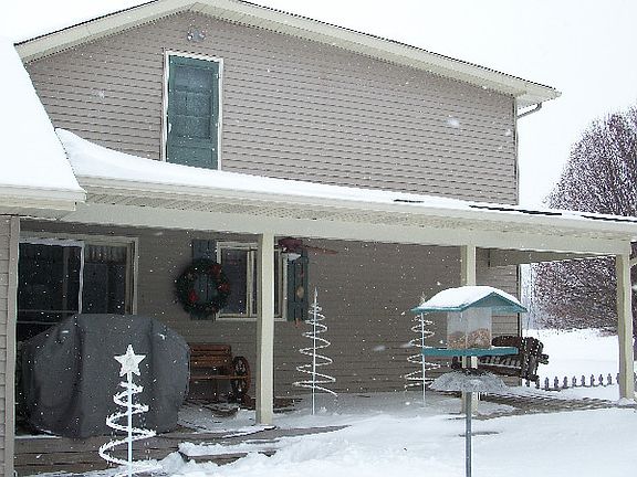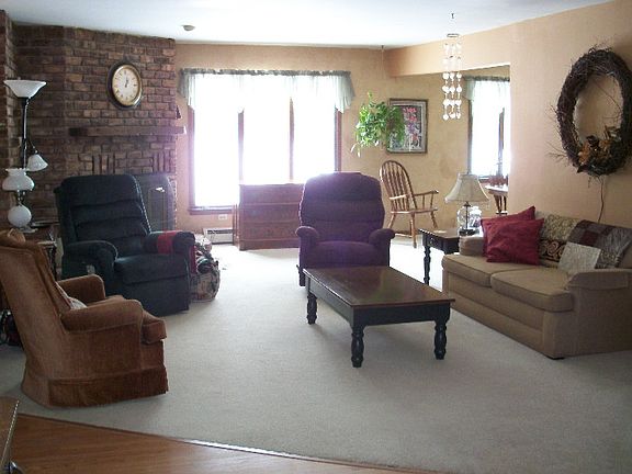 Spectacular home on 3 acre lot bordering the park. Updates include newer 200m amp service, newer roof and siding. B-Dry installed in 1/13. Open floor plan. Large eat-in kitchen with lots of cabinets and sliding glass doors leading to deck. Formal dining is open to living room with brick wall wood burning fireplace. Spacious foyer entry. Main floor master with full wall of closets. Master bath with his n her sinks. Main floor laundry. Family room on main floor. 2 large bedrooms on 2nd floor (17 x 11 ea.) and 2nd full bath. 2nd floor also has a wall of closets for additional storage and a walk out porch. Anderson windows and sliding glass doors. Full basement with workshop and 2 sump pumps. Beautiful country lot with 20 x 14 shed and 6 productive apple trees...Red, Yellow Delicious and Macintosh. A must see home!!!