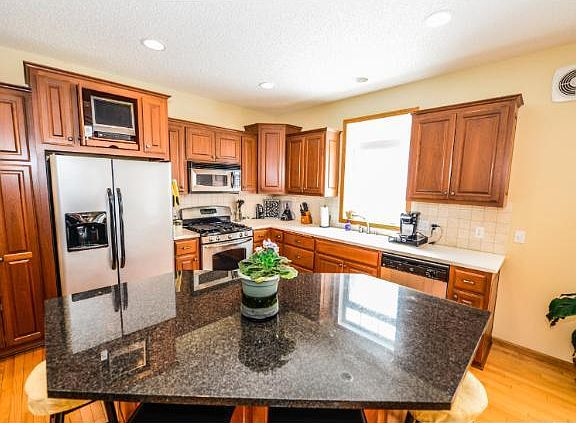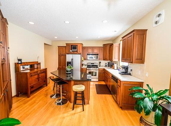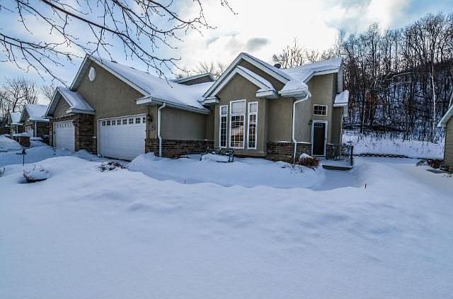 Wonderful end unit townhome backing to woods is a must see. Vaulted main floor master suite with luxury bath & w/in closet. Amazing kitchen, 2 story great room with gas fp, entertaining lower level w/wet bar & gas fp, private deck! New roof in 2013!