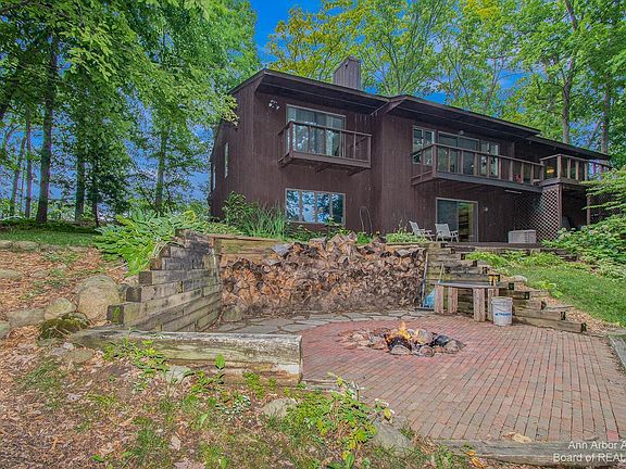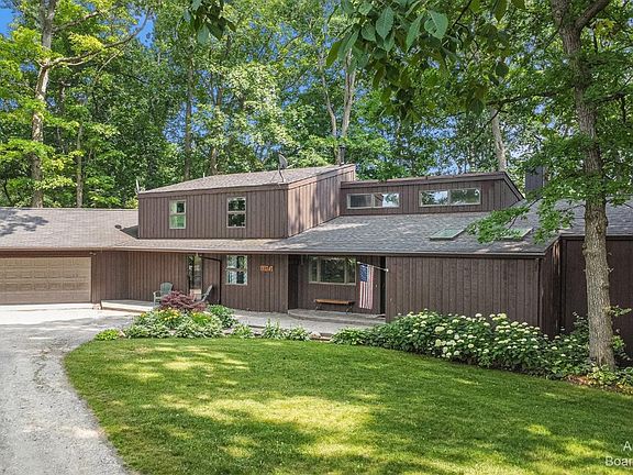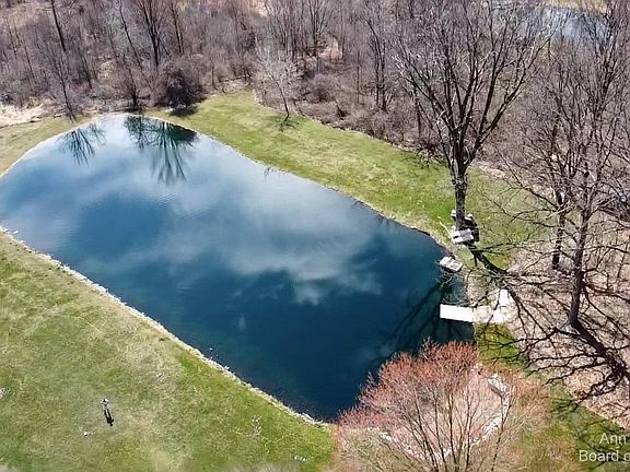 Nature lover's paradise on 24 wooded acres adjacent to state land, only 3 miles to town! Phenomenal property w/stocked pond for fishing & swimming w/beach & dock & endless hunting opportunities w/hardwoods, hunting shack & trails. No TV needed, head out to your own sports court to enjoy pickleball, tennis, basketball, hockey, etc. 4 bed/2.1 home features vaulted great rm w/office space & sunken living rm w/cozy FP & slider to deck overlooking beautiful views. Expansive vaulted dining w/sitting rm & Corian kitchen featuring snack bar, dbl oven & clever understair pantry. Fantastic mud/laundry rm w/tons of storage & full tile bath near main flr bed. Spacious primary ste offers private balcony, w/in closet & custom w/in shower. 2nd flr houses 2 more beds & half bath. W/out basement has famil family/rec space w/2nd FP, big workshop, many storage options & opens to patio & built in fire pit. Live like you're up north on private serene setting amongst the woods & wildlife. Tons of possibilities w/mature maples/syrup, hops/brewing & morels throughout the natural landscape. Acreage & taxes based on sum of two separate tax Id's incl. G -07-05-200-012., Primary Bath, Rec Room: Finished