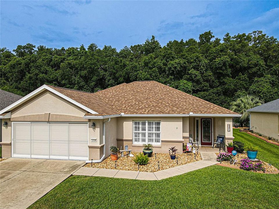 Nestled within the prestigious Del Webb Spruce Creek Golf & Country Club, this impeccably maintained two-bedroom, two-bath Alydar model exudes charm and sophistication. The home boasts a remodeled kitchen featuring light wood cabinets, high dimension Formica countertops, and stainless-steel upgraded appliances, including a sleek hood vent. Throughout the home, large-sized light-colored ceramic tiles create a seamless flow, complemented by crown molding and 5 1/4 inch baseboards, adding a touch of elegance. The Florida room features new picture windows, offering picturesque views of the brick paver patio and private serene backyard, perfect for outdoor relaxation. Other enhancements include curbed flower beds, gutters and down spouts, plantation shutters, and a leaded glass front door with matching side light. Recent upgrades include roof re-shingled in June 2023, HVAC replacement in 2013, and a new water heater installed in 2014, ensuring peace of mind for years to come. Additional features include inside laundry with cabinets, garage cabinets, surge protection policy, and a hot water energy plan. Utility costs are impressively low, with electric averaging $121.53 per month and water/sewage averaging $58 to $78 per month. Conveniently located near the adult pool, tennis, and pickleball courts, this home offers a lifestyle of leisure and luxury in a central location within the community. Home can be sold completely furnished and turnkey! Don't miss the opportunity to make this stunning property your own!