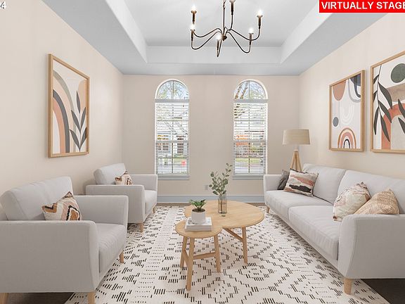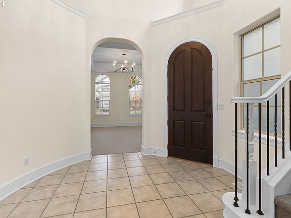 Welcome to the Edgewater on the Tualatin! You'll fall in love with the "Brighton" floor plan, a beautiful European-style home filled with quality touches throughout. The stunning two-story rotunda entryway showcases an exquisite chandelier and sets the tone for the entire space.The open great room features a spacious family and dining area that seamlessly flows to the kitchen and back patio, ideal for entertaining. The gourmet kitchen is a chef's dream, complete with slab granite counters, an eating bar, a pantry, and stainless steel appliances, all complemented by abundant cabinet space. Impeccably maintained, this home boasts high-quality wool carpet throughout and rich, oversized wood mouldings. Recent renovations elevate the primary and hall bathrooms with stylish new tile, quartz counters, and elegant bronze fixtures. Fabulous light fixtures add charm and sophistication at every turn. Upstairs, you'll find the luxurious primary suite, featuring French doors, vaulted ceilings, and his and hers walk-in closets. The dreamy bathroom offers dual sinks, a tiled shower, and a free-standing soaking tub. The convenient upper-level laundry room boasts a fun new tile floor and plenty of storage. Two additional bedrooms and a den/office with French doors complete the upper level. The two-car garage includes an EV charger, making it even more convenient. Enjoy the spacious, fully fenced backyard, which offers wonderful privacy, a covered patio, and a garden shed. Situated in a fantastic neighborhood with easy access to shopping, schools, parks, and more, this home is an exceptional opportunity you won't want to miss!