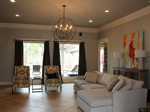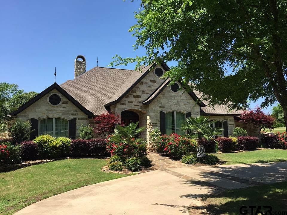 Location, location, location! This stunning 4/3/3 on almost 5 acres is minutes from Tyler, provides easy access to the interstate, and is in sought after Lindale ISD! The large circle drive, lush landscaping, exterior mixture of Austin Stone and Cave Rock, and country setting give this home amazing curb appeal. Step inside to neutral gray tones, soaring ceilings, custom crown molding, granite counter tops, stainless steel appliances and 9 foot doors. All of this, overlooking your own, private backyard oasis...mulit-level flagstone patios, an outdoor kitchen area, rock waterfalls, and mature palm trees surround the in-ground gunite pool and hot tub. Plenty of room in the 3 car side entry garage and 20x20 metal shop with concrete slab and roll up door.