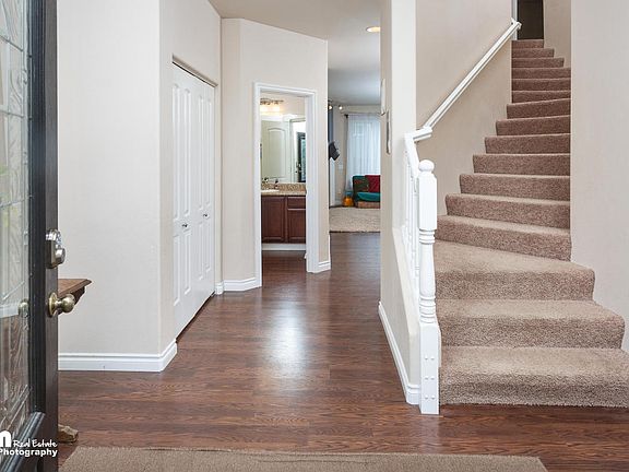 Powder Ridge at its finest! Gorgeous curb appeal, inviting entry, open living/dining/kitchen, ample storage throughout and upgraded! Granite counters/SS in kitchen w/island for family to gather. Quiet culdesac, lg fenced yard w/gardens, patio, deck, gravel pad. Location is convenient to shopping, outdoors, or commuting- you CAN have it all. Open den/family landing pad US for office or playroom.
