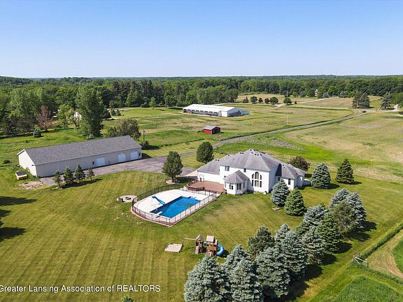 This is the LUXURY country property you've been waiting for! Nestled on over 10 acres of land in Grand Ledge school system, this home has had numerous updates done by the current owner. This 5500+ finished square foot custom-built property feels like a new build with updates to the kitchen, bathrooms, trim, paint, HVAC, and more! The 60x120 pole barn (which would cost at least 300k to replicate) of your dreams is awaiting you with a full bath and laundry hookups. One side can be used for workshop or car repair area (car lifts negotiable) and the other side can be used to store your RV's, classic cars, or ATV's. The heated saltwater pool will be refreshing on a hot Michigan summer day. House has been converted to geothermal and also has a whole house generator. Easy multi family or rental use for the fully finished basement, which includes a full kitchen, bedroom, bathroom, rec spaces, and media room and has its own private access through the 3-car garage. Schedule your showing soon because this move-in ready property will be sure to receive a lot of interest!