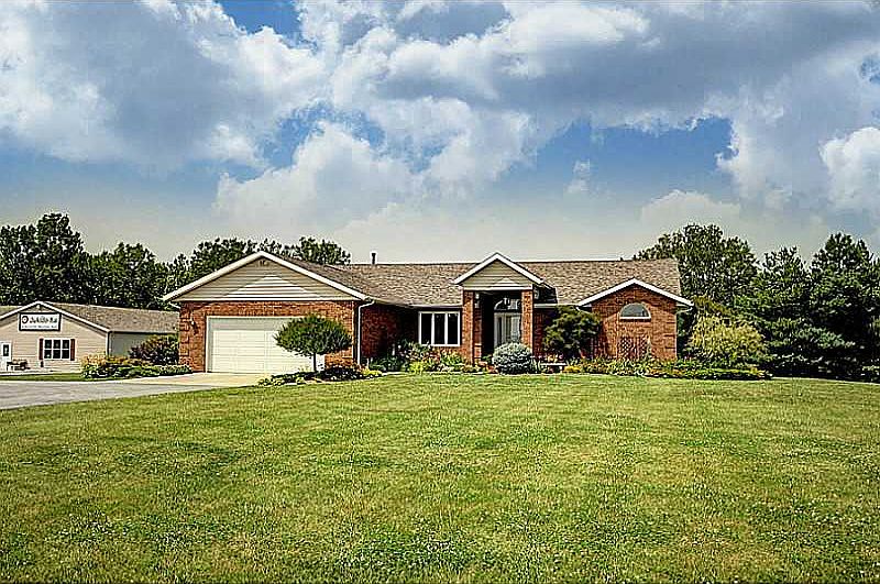 Beautiful Custom Home on App. 3.614 acres. Split Floor Plan, Features Open Concept in the Kitchen, Dining, and Living Rm, w/Vaulted ceilings. Spacious Master Br. Suite w/two Walk-in Closest & Updated Bath. Finished Walkout Basement w/Bar (675 Sq. Ft.) that opens to Open Patio, Great for Entertaining. Quiet & Peaceful Location w/easy access to I-75 & U.S. 33. Additional land and commercial outbuilding (MLS#361680) with combination price of $424,900 is currently pending.
