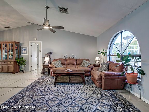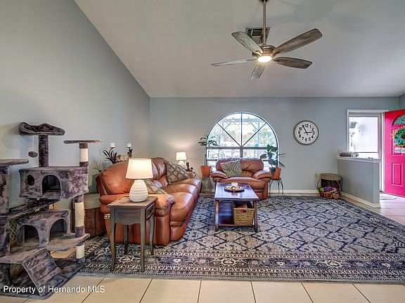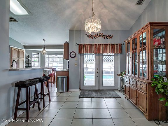 Active Under Contract. No worries with this home! BRAND NEW ROOF (2/2024)! AC IS ONLY 5 YEARS OLD!! This beautiful 3 BEDROOM, 2 BATH, 2 car garage POOL home is situated in Spring Hill on a FULLY VINYL FENCED lot. Upon entering the front of the home, you will walk through the SCREENED VESTIBULE and step into the foyer and large, open LIVING ROOM with CATHEDRAL ceilings and arched picture window. The living room flows into the dining area, which has FRENCH DOORS connecting the indoors to the outdoors which leads you to the sparkling POOL AND SCREENED lanai (screens 2022). Enjoy basking in the sun or if its a shady area you are seeking, sit under the newer MOTORIZED SUNSETTER (2022). The pool also has a NAUTILUS POOL CLEANER to keep it sparking! The kitchen has a nice flow to it for the budding chef in you. It offers ample cabinets, black and stainless appliances with newer dishwasher, EAT IN NOOK overlooking the pool, breakfast bar, extra cabinet space perfect for a coffee/liquor bar, and a CUSTOM BUILT PANTRY with pull-out shelving. Adjacent to the living/dining area is the master suite with a huge WALK-IN CLOSET. The recently UPATED master bath has a walk-in shower and pool access for your added convenience. The 2 guest bedrooms (new LVP flooring 11/2023) are split from the master and share a bathroom. There is an inside laundry room with cabinets and new LVP flooring (11/2023). The garage would make a perfect additional gathering and entertaining area for those cooler Florida evenings, complete with cabinets, counter space, extra refrigerator/freezer, an electric fireplace, TV and a MOTORIZED PRIVACY SCREEN (12/2021). The garage door was replaced in 2019, Shed (2020). The Suncoast Parkway entrance is only 5 minutes away and provides easy access to the Tampa Airport in just 40 minutes. A quick hour and 45 minute drive puts your in Orlando to experience the thrill of all the theme parks. If it's nature you are craving, Weeki Wachee Springs, Roger's Park, and Pine Island are a short drive away.