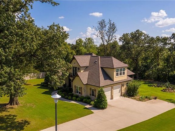A JEWEL IN THE CROWN OF THE NEIGHBORHOOD! Located just off Hwy 112! Bentonville School District! As soon as you drive up to this exquisitely appointed home, you feel its uniqueness. Settled on a large, 0.73-acre lot in a cul-de-sac, the quiet environment soothes and relaxes! Exterior offers professionally landscaped front, stucco, stone&brick, spacious covered patio to enjoy your evenings on and trees great for privacy! Interior features custom front door, formal dining room with crown molding, office with vaulted ceiling with beams, inviting living room with wood-burning fireplace, beautiful kitchen with custom cabinets, granite kitchen tops &soapstone sink, gas stove, stainless appliances &pantry, master suite with wood flooring and tray ceiling, master bath with tiled walk-in shower and free-standing soaking tub, dual granite vanity and 2 walk-in closets! Upstairs includes bonus room that can be used as a bedroom or den &two bedrooms with two full baths! Energy efficient features and more! See it. Love it. Live it!