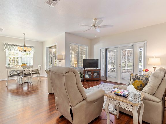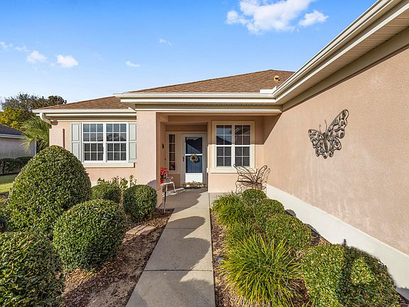 MOVE-IN READY HOME IN DEL WEBB SPRUCE CREEK GOLF & COUNTRY CLUB. Adorable and well-maintained Cape Sable - 2 bedrooms, 2 bathrooms plus den. Vinyl plank laminated floors throughout, Corian counters in kitchen and bathrooms, Bay window in master bedroom. French doors from living room to patio. Newer irrigation system. Epoxy finish garage floor, side entry door and utility sink. Stunning super-sized bird cage off living room. French doors with open view. Furniture and furnishings available for sale separately. Monthly HOA includes security, common area maintenance, trash removal and use of the amenities.