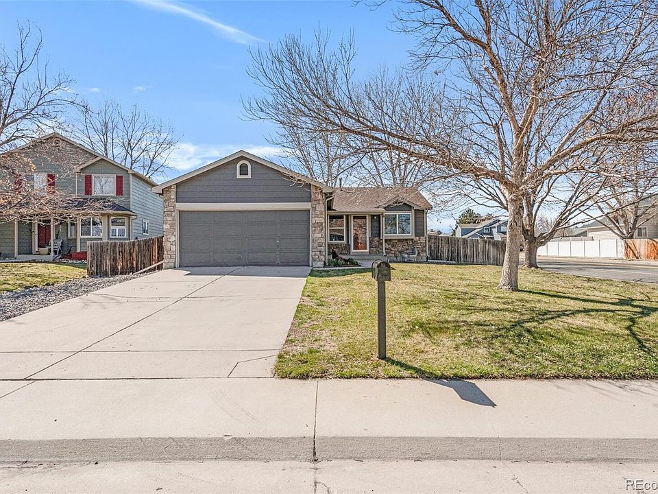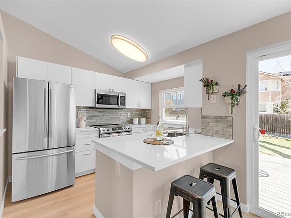 Highly sought after ranch floor plan in the coveted Amherst neighborhood features a completely updated property ready to be your new home. With an all new kitchen and new bathrooms, flooring, paint, doors and fixtures, this 4 bed, 2 bath house boasts an open living room, 3 main-level bedrooms and a fully finished basement with a 2-car attached garage. Enjoy the brand new kitchen cabinets, quartz countertops and modern backsplash that opens to your dining and living areas. The finished basement has a 4th bedroom with an egress window, a newly renovated bath and a separated, closed off laundry room. Stylish luxury vinyl flooring was installed on the entire main level and laundry, while designer tile floors/showers and new vanities in baths bring everything together. Carpet and padding are new for the entirety of the downstairs. Enjoy grilling and relaxing on the completely new composite deck, with new railing and a privacy component included. This home is on a cul-de-sac corner lot, much larger than most in the neighborhood, with great space and mature trees in the backyard. Trees have been pruned and trimmed and are ready for full bloom this spring. A nice yard design with several areas freshly mulched for plants, flowers and even vegetable growing awaits the new owners, all with a front and back yard sprinkler system. Newly supplied rock allows for RV or camper parking. All kitchen appliances and washer/dryer are included. Home is close to dining, shopping, entertainment and is less than a mile to Legacy High School. Don’t miss out on this opportunity!