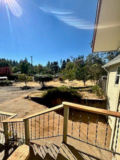 Gardener's Paradise on huge lot! Sweet little home with just under an acre close to town. Two bedrooms, one bath, with extra room that can be used as a third bedroom or office space. Freshly painted and original hardwood floors newly sealed. Large kitchen/dining space with concrete floor that opens to a beautiful patio area great for entertaining. Garden boasts Pear, Peach, Apple, Walnut and Almond Trees, and includes large shed/workshop area. Basement with washer/dryer and storage space, lots of parking, property is fully fenced with TONS of room to roam. No smoking. Please drive by to take a look then call Jessica for showing.
