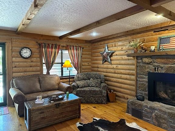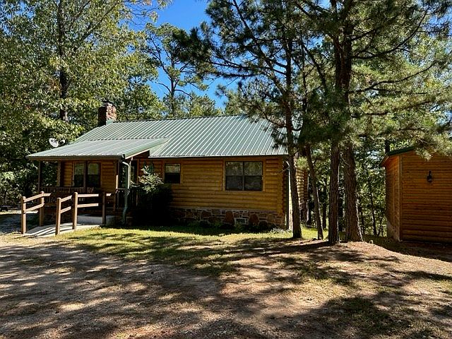 Cabin Living at its'best. Beautiful place , 2 bedroom, 1 shower, to retreat and let the world go by. Furnishings and appliances come with the home with a few exceptions. (Blue chair , and bedroom suites) Relax by the fireplace inside or toast by the firepit! Easy to maintain home and yard. Shop with concrete flooring, electric, and storm shelter . Enjoy the outdoors of the Illinois River for fishing and canoeing, trails, golfing, private lakes, swimming pools, tennis courts! Property Owner Association dues of $90 per month