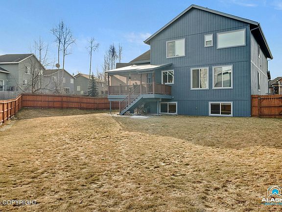 This exquisite home exemplifies craftsmanship, space and comfort! It boasts 5 bedrooms with a potential for 7 in the finished basement. The first floor features an open plan with gourmet kitchen, living room and dining room with a gas fireplace. Additionally there is a large bedroom or Q office featuring french doors and a full bathroom, perfect for guests or an in law arrangement.The second floor features 3 bedrooms with large closets, the master having a gorgeous spa like bath complete with a soaker tub and tiled shower. Theres is an additional full bath in the upstairs hallway. The brand new washer and dryer is conveniently located on the second floor along with an oversize landing and 2 linen closets. The finished basement is the hidden gem in this home. Dreaming of a dedicated yoga or workout space or a media room? This home has it along with a reloading room, man cave or crafts room. The thoughtfully designed space completed in 2023 includes a fifth bedroom and a full spa like bath. The large fenced yard completes this remarkable property with a covered deck with privacy blinds and a hot tub to enjoy those chilly Alaska nights. The oversized covered front porch welcomes you into your new home! The three car garage provides ample storage for all of your Alaskan toys. Pride of ownership shines in all of the details including installation of GILLA mirror privacy film on all rear facing windows. Located in the family friendly Powder Ridge subdivision with low HOA of only $15 per month this home is just minutes away from all essential amenities. You won't want to miss the perfect blend of luxury, functionality and a prime location. You must see the pristine inside of this gorgeous home to fully appreciate!