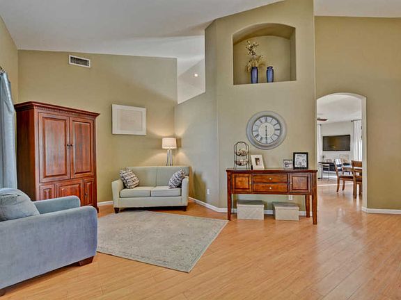 One-of-a kind! This upgraded, immaculate home sits on 1/3 acre lot and includes a rare, attached RV garage. Bright & welcoming interior offers a formal living/dining room and spacious great room. Laminate floors throughout the main living area. Surround sound in the family room & master suite. Stunning eat-in kitchen boasts Stainless Steel appliances, gas range, and walk-in pantry. Bonus enclosed den/office. Elegant master oasis has a separate exit with brand new slider, walk-in closet, and an exquisitely updated master bath with new 2 sink vanity, quartz tiled shower, and separate tub. Incredible backyard boasts a sparkling pool with newer cool deck, paved patio, & RV gate. Tandem garage has epoxy floors, shelving, and 220v. Much more to see, visit in person & make this your new home!