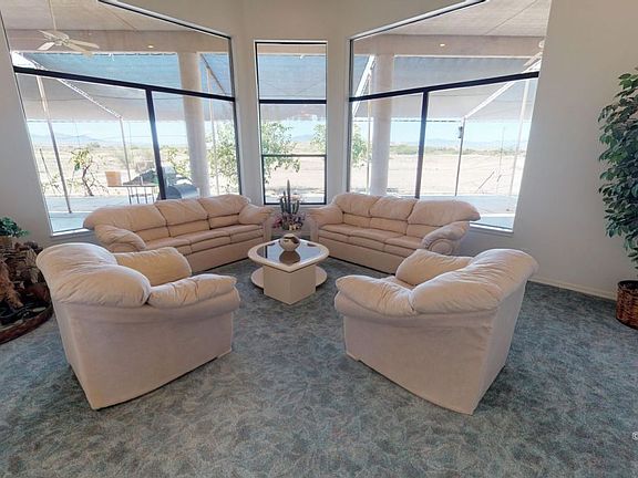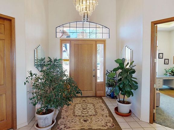 Walk up to the rustic and elegant front door and enter the grand entry with 16' ceilings. The 16' ceilings continue into the living room with large windows to allow for a panoramic view. In foyer and living room, Kitchen, eating area and family room are all open to each other. Kitchen has a huge pantry, double ovens and a large island. Master bedroom is expansive with a sitting area. The spacious master bathroom has 2 separate sinks and vanities, an island, garden tub, walk in closet and dual headed shower. There are 2 full size bathrooms, storage closets and a wall full of closets for storage with vaulted ceilings in the hallways. Some of the extra upgrades include plentiful electrical outlets inside and outside home, vaulted ceilings, 2 water heaters, and 2 air conditioners. The covered patio runs along the whole back side of the house with mature grape vines. Patio is plumbed for outdoor kitchen to fully enjoy the spectacular view for outdoor entertaining. Office has its own entrance for a unique home office. Enter the large two-car garage on the side of the house. This is a must see home on 2.07 acres.