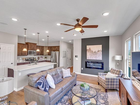 Model home lease back opportunity! Stunning Villa ranch home design by M/I Homes, featuring 3 bedrooms, 3 baths, bonus room, a 2-car garage and front & rear covered porches! The Main level includes an open kitchen and family room. Boasting solid surface countertops, SS appliances, a large island, and pantry, this kitchen has it all. Maintenance free living near shopping, recreation, and highway access!