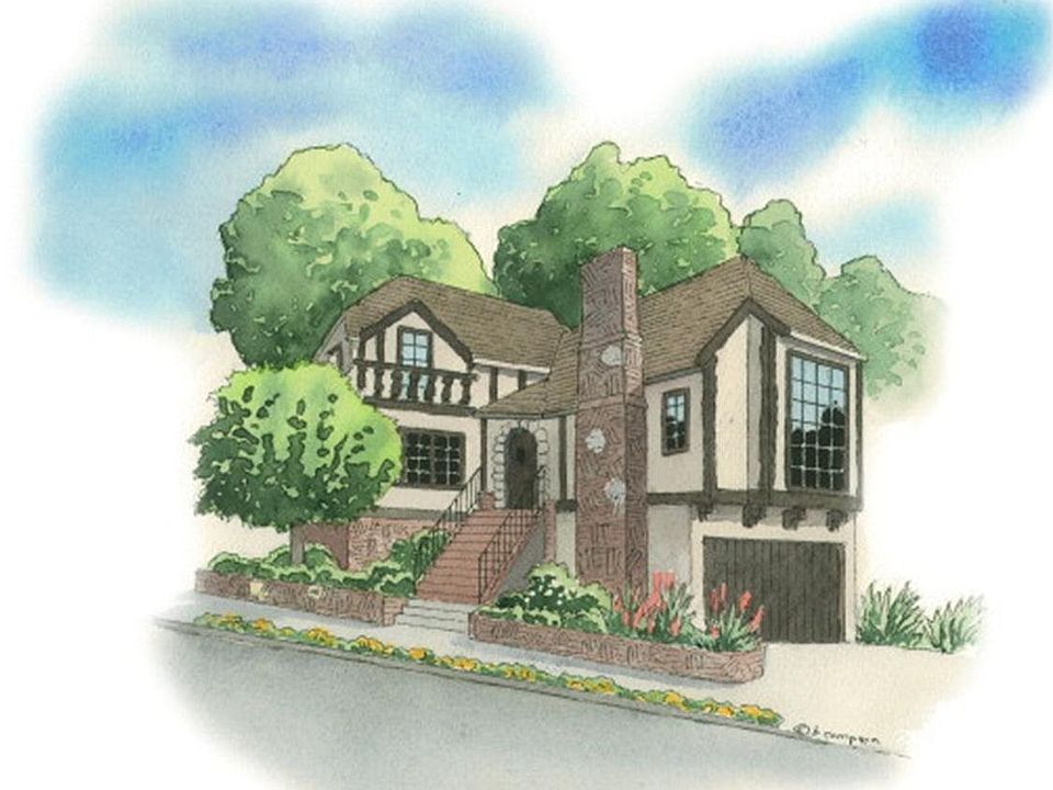 Charming Crocker Highlands Tudor. Formal LR with stunning front window, gas fireplace, high curved ceilings. Formal DR w/beamed ceiling. Eat~in kitchen. Bedroom/office with updated bath on main level. 2 bed/1bath up. French doors from master to lovely sheltered deck. Two more levels of decks!!!!