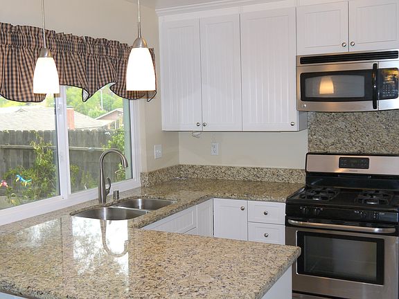 Adorable ENERGY EFFICIENT home that has been fully renovated and move in ready! Kitchen features granite counter tops, Stainless steel appliances, decorative pendant lights. Fridge included! Home has newer dual pane windows and solar system. LOW bills! Bathrooms have been completely redone with beautiful tile tub surround, granite counters and modern light fixtures. Vaulted ceilings in spacious living room. Master has a slider out to large yard. New pavers in the backyard, great for entertaining! Seller will entertain between $349,900-$365,000!