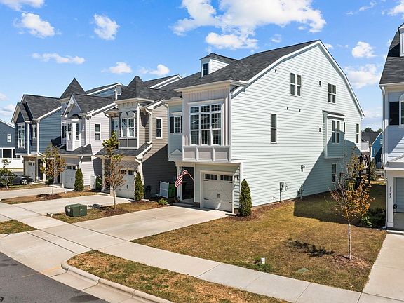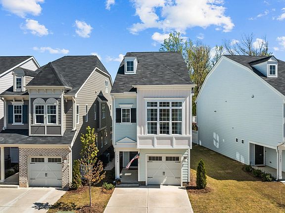 Adorable light filled cottage dripping with charm! 3 floor, open concept, great for modern living needs. 1st floor flex space accommodates work & play nicely & flows to covered patio perfect for entertaining! Light filled 2nd floor has a well appointed kitchen with huge farmhouse sink & a French door refrigerator. Family rm has vaulted ceiling, fireplace, & leads onto private deck overlooking a park! You'll love the master suite, also with vaulted ceiling and abundance of windows! Enjoy 2 bedrooms & full bath on the 3rd floor. Sweetwater has a pool, clubhouse, fitness center, dog parks, playground, & pocket parks! Amazing 45 acre commercial & entertainment Town Center is under construction. Property 11 miles from RTP. Seller is daughter of listing agent.