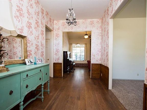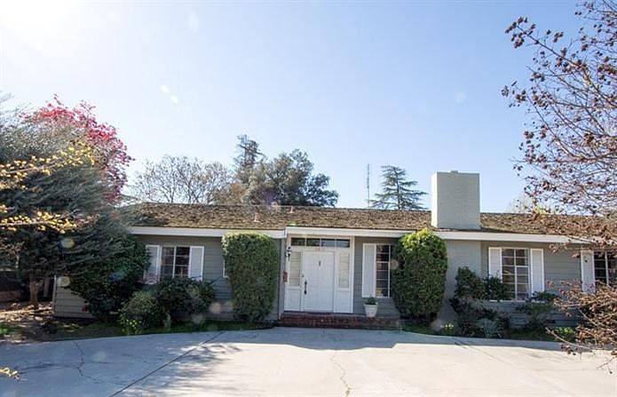 Established and ever popular neighborhood in south east Selma. This exquisite home welcomes you with circular drive to front entry. Step onto beautiful hardwood floors in entry, family rm, formal dining rm & hallway. Enjoy the oversize living rm with fireplace and formal dining rm with big picture windows for those special guests. For more casual entertaining enjoy large family rm with 2nd fireplace, French doors to backyard pool, vaulted ceilings & pass-through to kitchen. Kitchen includes travertine tile floors tile counters with brand-new double oven & built in cooktop. 1st bedroom with door to back patio. Master bedroom with two wardrobe closets. All three bedrooms have new carpet. Master bath with dual sinks tiled shower and tile floors. Hall bath updated with tile floor, jetted tub & shower plus granite counter top for that special effect. Large lot with covered patio extended patio areas around pool plus back alley with rear garage access.