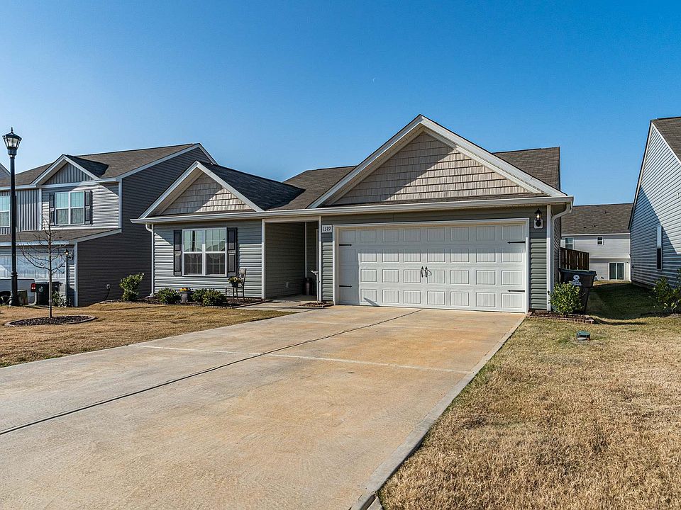 This like-new, single-story home in the Finlay Farms neighborhood has all the charm for a move-in ready home. The front of the house provides a spacious driveway with beautiful curb appeal and landscaping, and stunning architecture. Upon entering you will see great modern touches throughout. The Great Room provides an abundance of natural light, high vaulted ceilings, new luxury vinyl plank floors, fresh paint, access to the back deck, and great open floorplan. The Eat-in Kitchen opens to the Great Room and has beautiful shaker-style white cabinets, HUGE storage pantry, granite countertops, and a great gathering island and bar. The Dining Room off the Kitchen offers a large space for meals and gatherings. The bonus space in this home is the cozy sunroom overlooking the backyard perfect for a reading nook or additional entertainment area. The Master Suite has everything you want in a master bedroom! It features a large living space for plenty of design ideas, two Walk-In Closet, and a private bathroom with a walk-in shower and vanity. The additional 2 bedrooms each offer a private closet and a shared bathroom that features a vanity and combo tub/shower. Located off the kitchen is the spacious laundry room that has built-in cabinets with plenty of storage space. The fully fenced backyard features a large, screened in porch and plenty of space for all of your backyard design ideas. Make this pearl yours today! **BONUS: New Luxury Vinyl floors; Whole House Gutters; Custom Fence