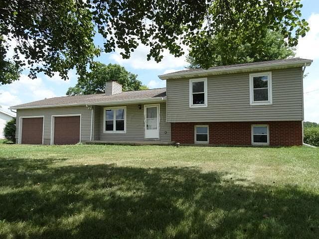 4-level home situated on just under an acre. Needs works, but offers great potential. Home offers 3 bedrooms, 2 full baths, fireplace, living room, eat-in kitchen, 3rd level family room (mostly finished), and unfinished 4th level for storage. Large 2-car garage. Yard shed. Nice flat lot. Great location is EZ to reach I-71 or Sunbury via Route 61. Nearby convenience store & gas station; bank, pizza, just down the road. New electric panel, sump pump, well pressure tank. Conventional financing or cash only. Sorry, no rehab financing. ** Pre-approved buyers only **. Bank-owned. Being sold AS-IS.